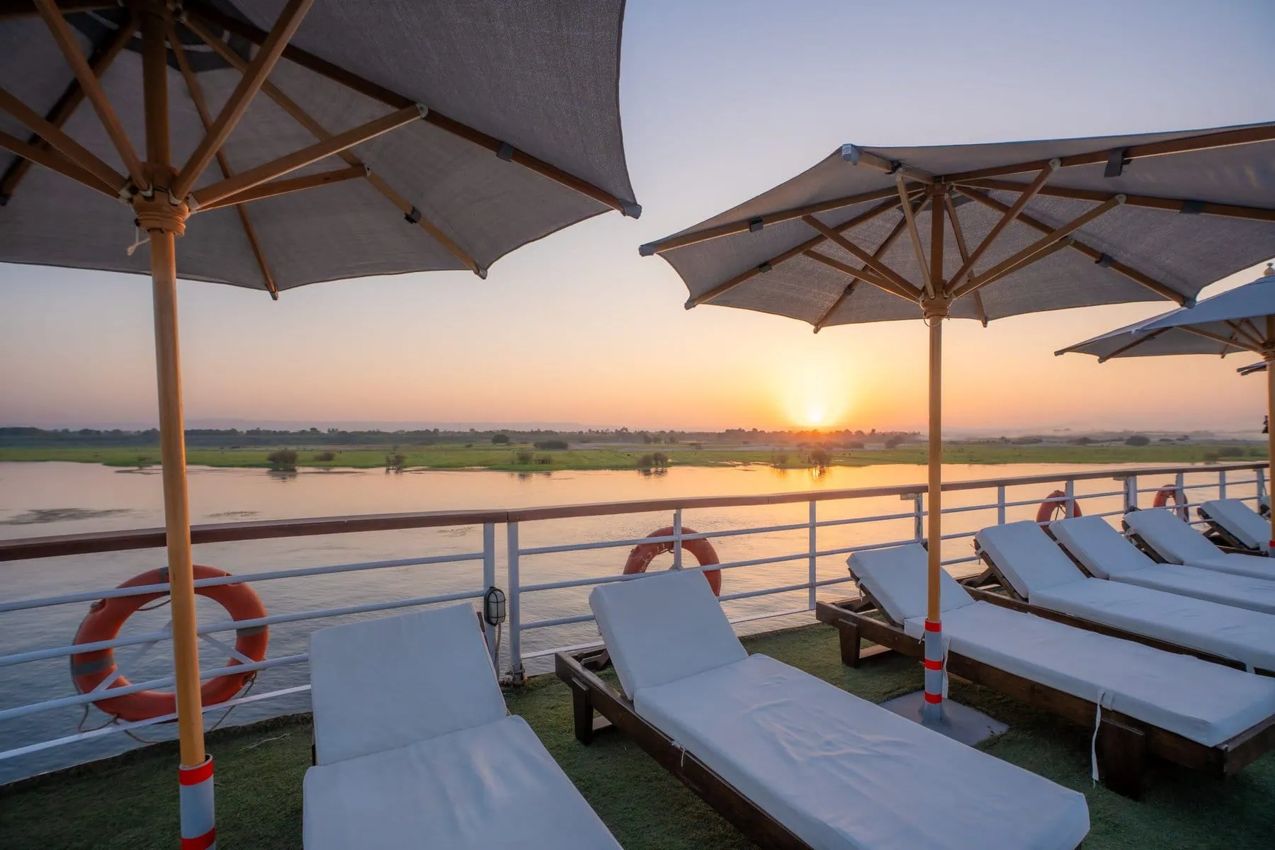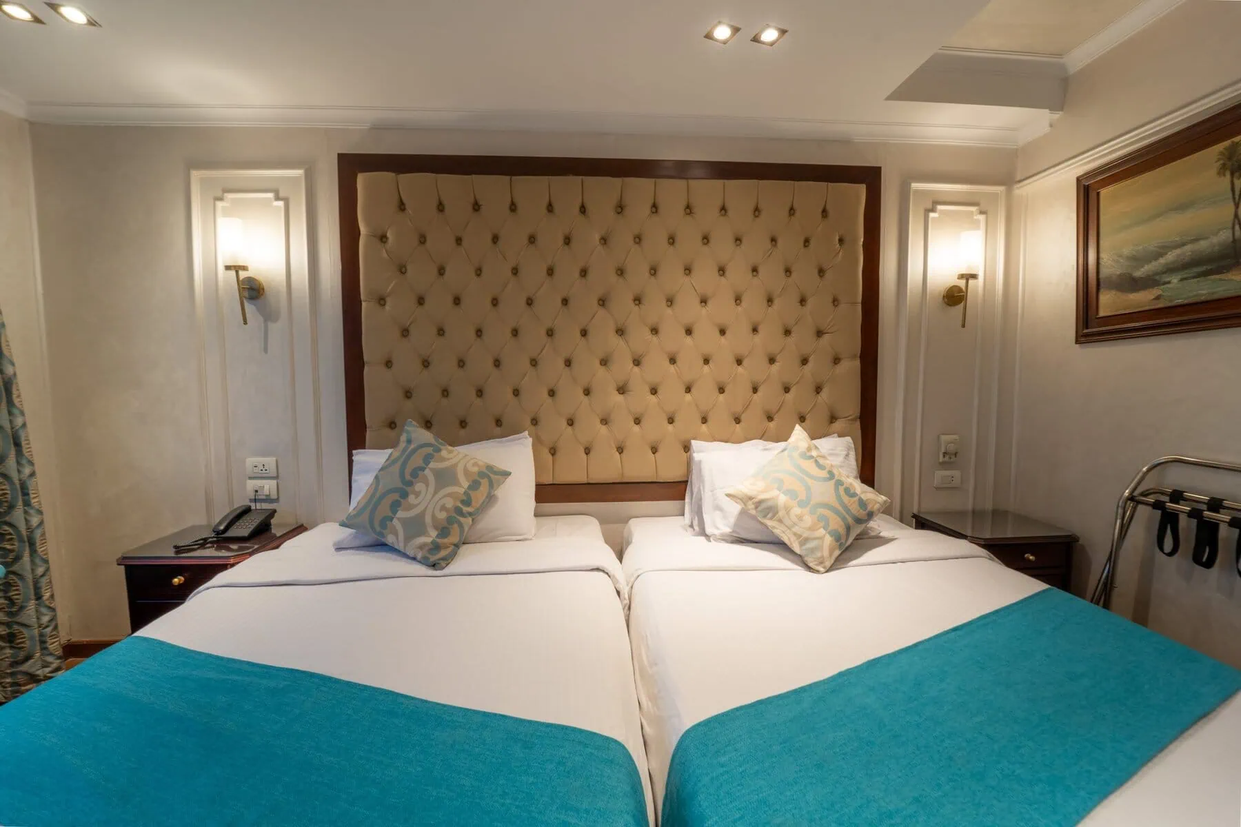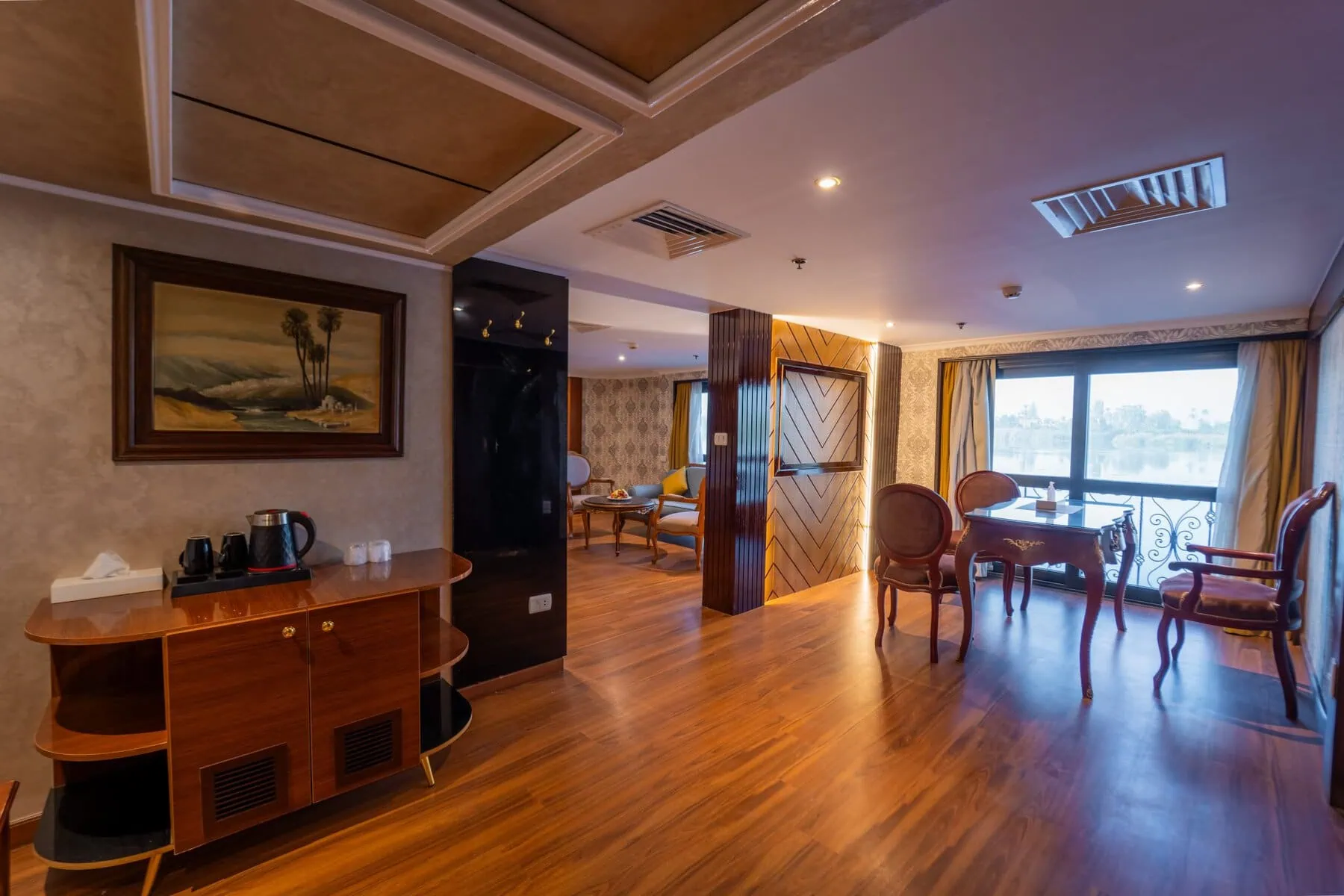 Experience elegant comfort in our spacious cabins, each featuring a French balcony with stunning Nile views, modern amenities, and refined décor for a truly relaxing stay.