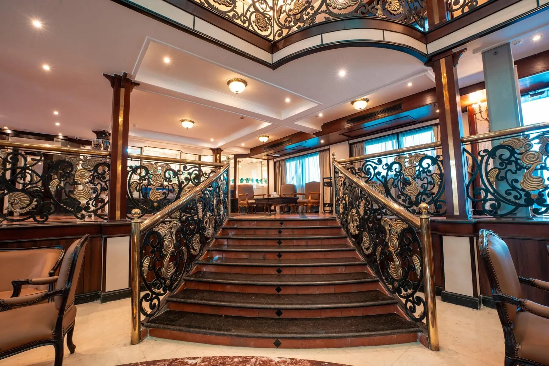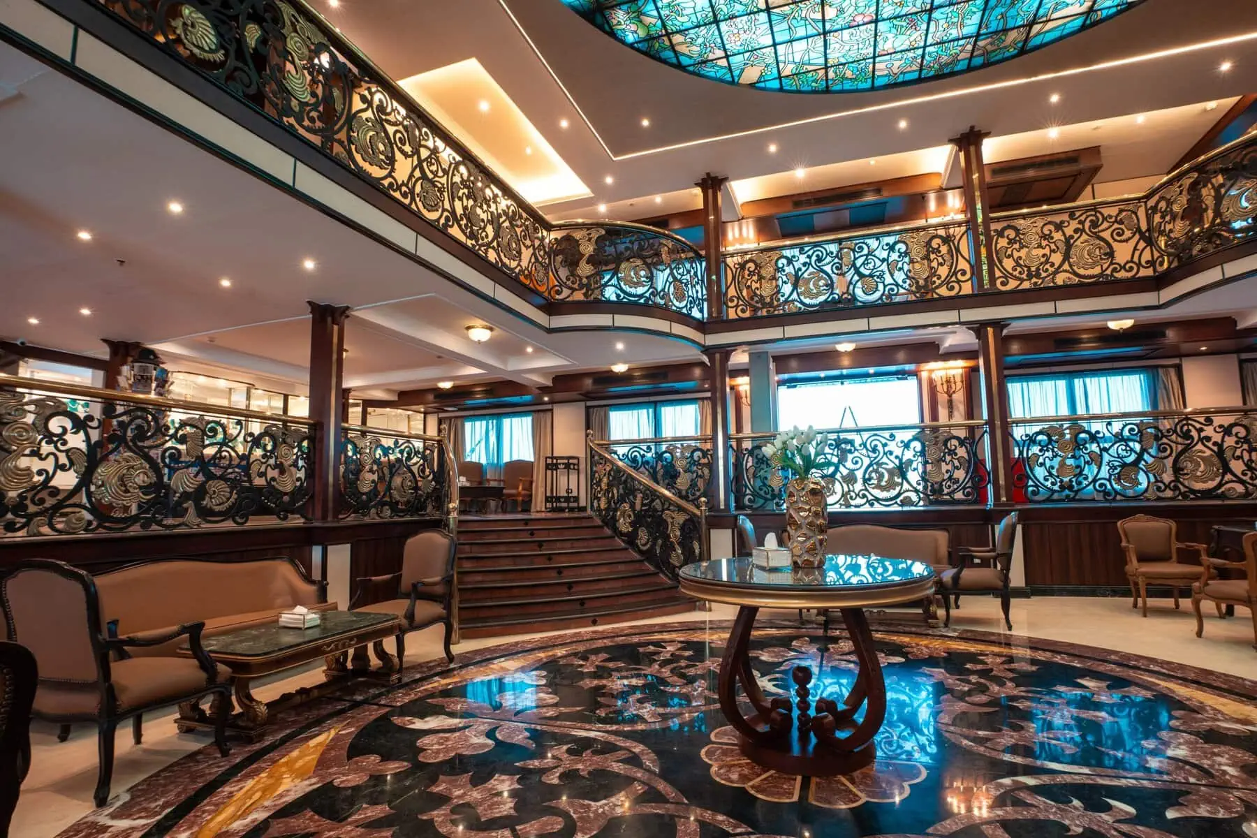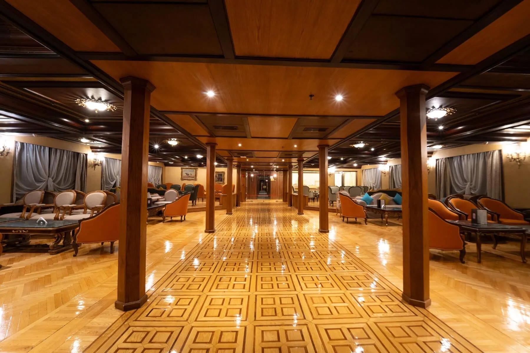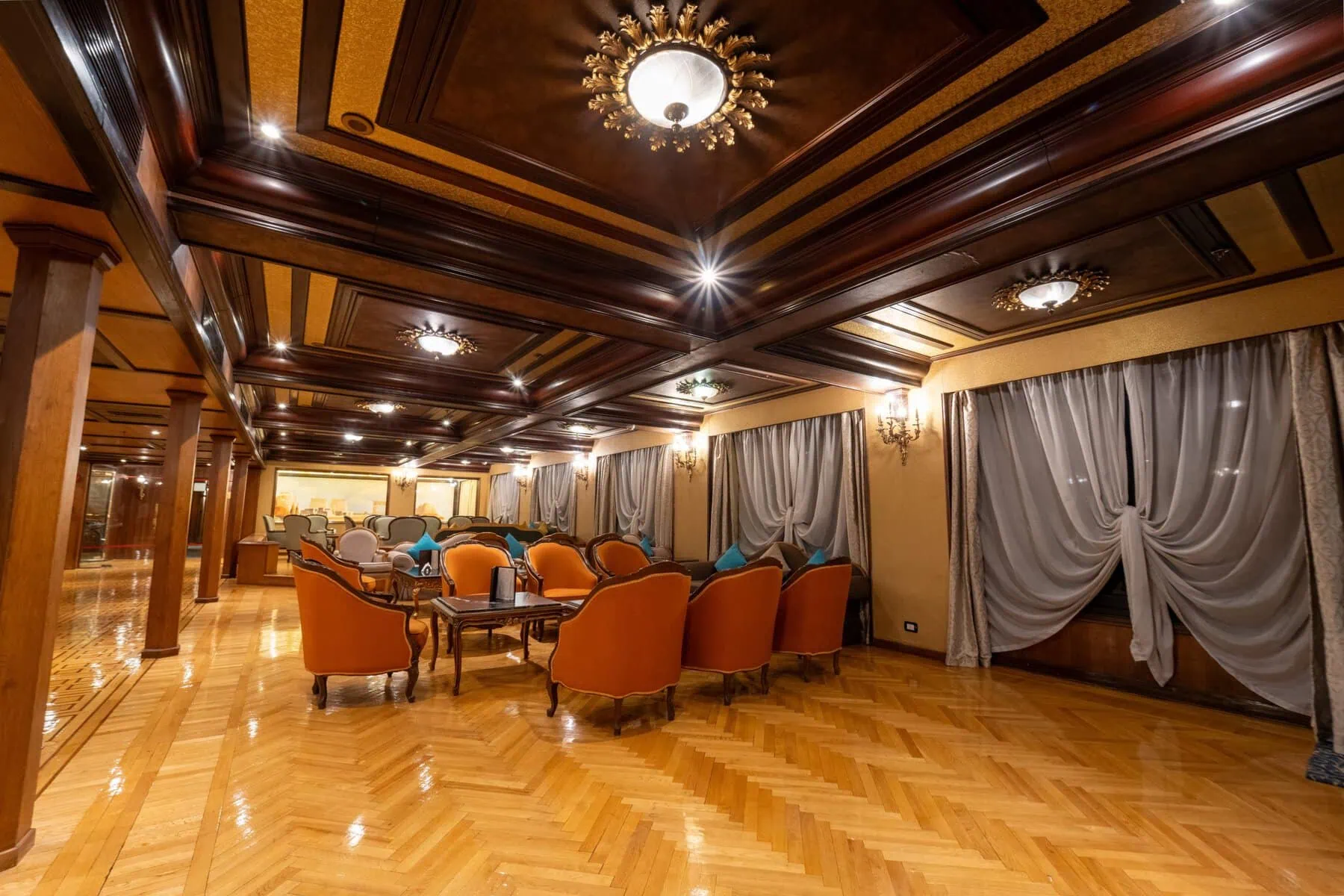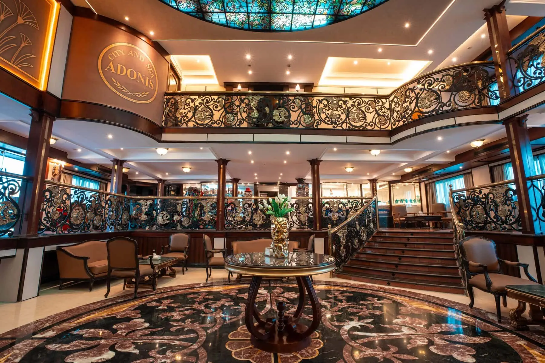 Step into elegance with marble floors, stained-glass lighting, and plush seating — the City and Sea Adonis reception sets the perfect tone for your Nile journey.